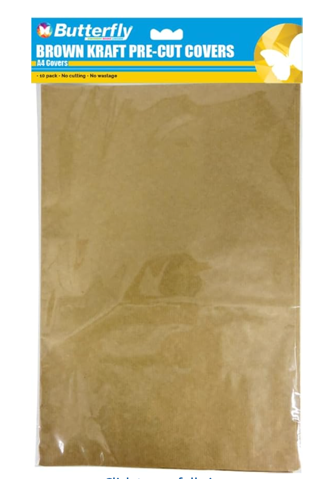 Keep your school books neat, tidy, and protected with Butterfly A4 Brown Book Covers. These durable, pre-cut covers make wrapping books quick and fuss-free — no measuring, trimming, or tape needed!